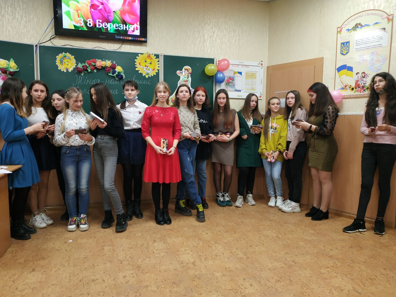 4 березня до нас в клас завітали наші батьки. Ми старанно готувалися, щоб привітати всіх з прекрасним весняним святом - 8 березня. Було дуже весело: пісні, танці, вірші, сценки та надзвичайно красиві слова для наших матусь, бабусь, сестричок, подружок та усіх жінок. Діти подарували своїм матусям святкові листівки, які зробили власноруч. А хлопці привітали дівчат солодкими подарунками. Велика подяка та вітання нашому класному керівнику Тимошенко Оксані Григоровні. Вона дуже допомогла нам у підготовці свята.